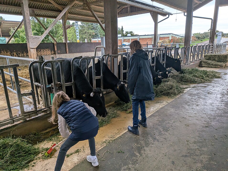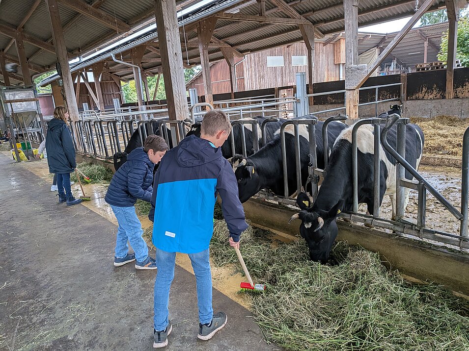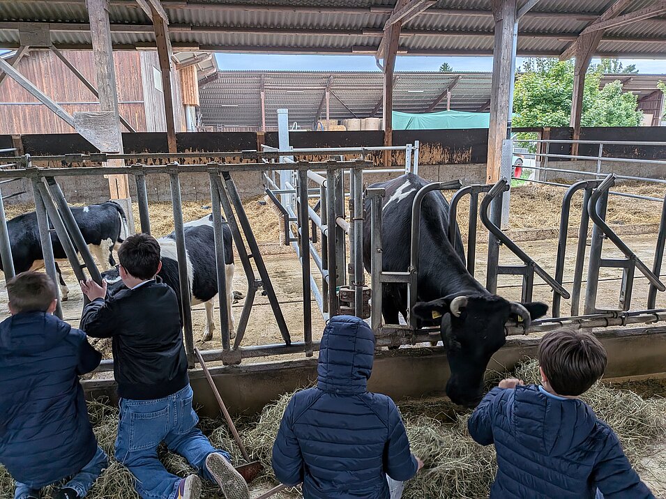 Die Kinder fütterten die Kühe, ließen sich die Melkmaschine erklären, schauten bei der Käserei vorbei und durften das Melken an einem Modell selbst versuchen.